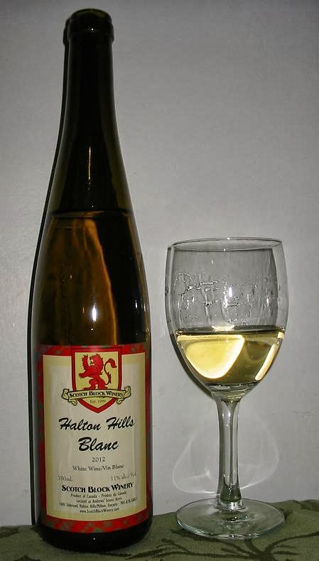The Scotch Block Halton Hills Blanc is a relatively new wine. It pours with a very clear, pale straw colour and some minor effervescence along the bottom of the glass. It has a very pretty hue in the glass.